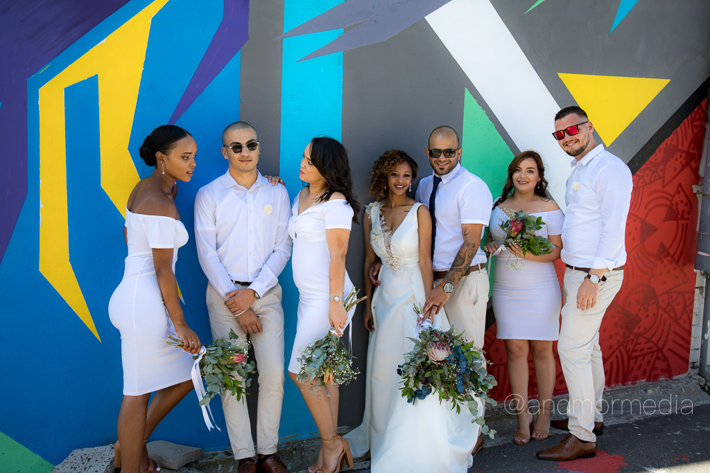 This venue had so much creative flair, including the exterior that was filled with colourful street art. The perfect location to express our own creative flair. The couple could not have chosen a more suitable venue to compliment their colourful love for each other and the beauty of two families coming together through their union. Oh did we have fun with all the colour around us – how could we not utilize the colourful street art!