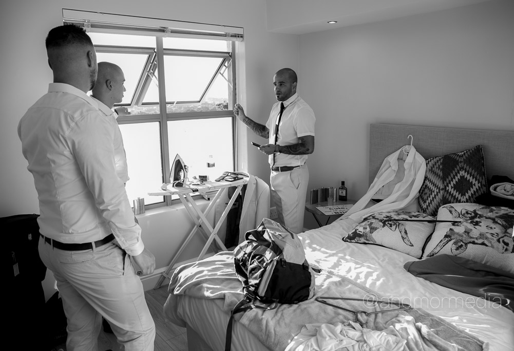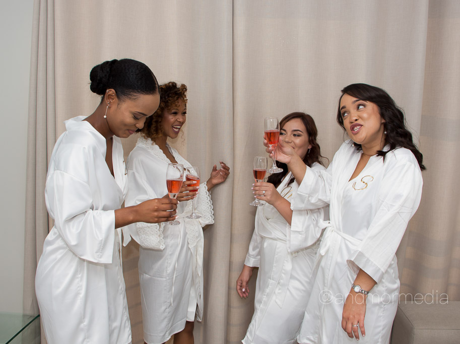 Upon arrival, we were greeted with warm smiles and an atmosphere that stated ‘we’re ready to take this next step’. Bride and groom were just rooms apart making it somewhat challenging for our team to navigate with limited space for movement. Alas, we worked our magic and made the best of what was presented to us. Even rotating team members in and out of the apartment to keep things flowing smoothly. Oh did we mention that we also had the team from Dusty Films with us for the entire day shooting behind the scenes of our Andmor team.